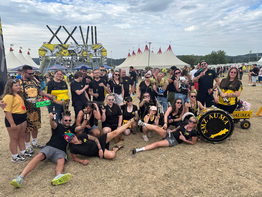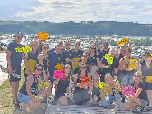 So viele "Anfänger*innen" und nur ein einhalb Stunden Zeit, um etwas Kleines einzustudieren. Wir wussten nicht, wie das wohl werden würde. Von Trommelnden über Schalmeienspielende bis hin zu Cheerleadern musste alles mit drei Übungsleiterinnen gemeistert werden. Heraus kam eine Mini-Version des diesjährigen Hits "Wackelkontakt".
