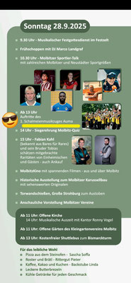 Am Sonntag, den 28. September, waren wir den ganzen Nachmittag in Molbitz bei Neustadt an der Orla zu hören. Die Besucher konnten ein abwechslungsreiches Festprogramm für die ganze Familie genießen. Ein großes Lob an die tolle Organisation, Durchführung und Freundlichkeit! Es war sehr schön.